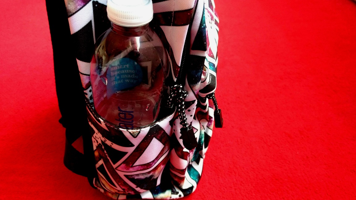 This is a bright and cheerful looking canvas backpack which is ideal for young students for school or college. This backpack has a large zip on the top which when unzipped gives access to it's spacious main compartment with a secured pocket capable of holding a tablet of up to 14 inches.There is also a smaller zipped front pocket which can hold bits and pieces and two side pockets which could be used to hold a water bottle, small umbrella etc.