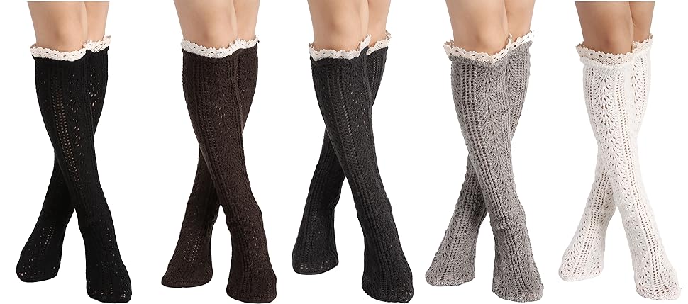 These Avidlove Women Socks Knit Crochet Boot Cuffs look cute peaking out of my boots. I like how it just covers my calf and bottom of my knees since it does not get really cold in this area often, and this won't make me get too warm. This is good to wear in the winter but I can also wear it just for style as well during other season. The design with the lace trim looks great and I like how there are so many different colors to choose from. This is an excellent addition to my sock collection.