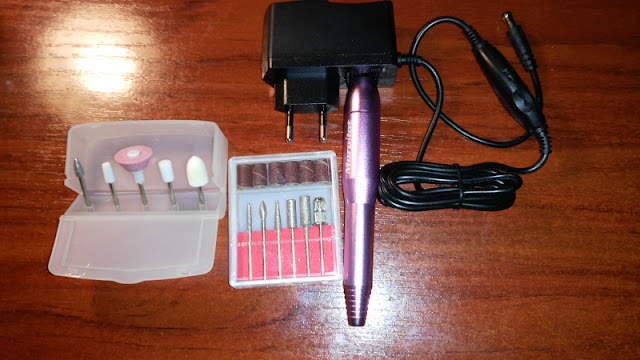 El principal es el lápiz donde se pueden colocar los accesorios de lima y pulido, acabado en aluminio y de un cierto peso, pero manejable. Se hecha a faltar que el control de velocidad o como mínimo el botón de encendido esté en el propio lapiza. Como se puede observar en lugar de ello, está situado en el cable de alimentación con un interruptor para encender y apagar y una ruedecita para variar la velocidad de giro.